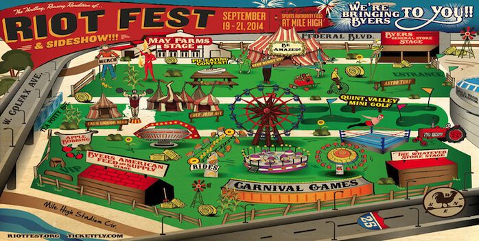 We are very sad to be forced to leave Riot Fest & Sideshow’s inaugural home at May Farms but are confident that Mile High will be well suited for the fest! A full statement from festival owner Riot Mike can be read HERE.
