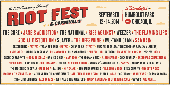 We couldn’t be more excited to celebrate our 10 birthday in Chicago this September. Thanks everyone for your enthusiasm and patience – the Riot Fest & Carnival 2014 lineup is here!