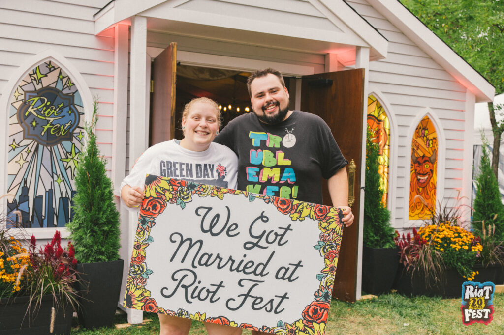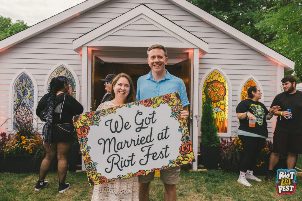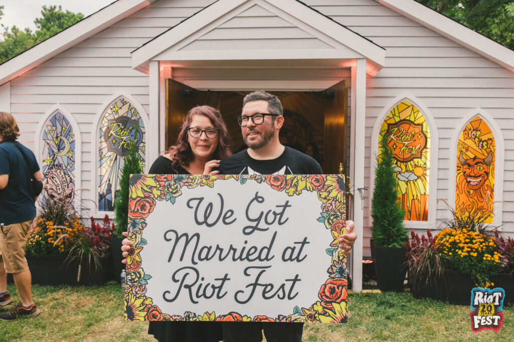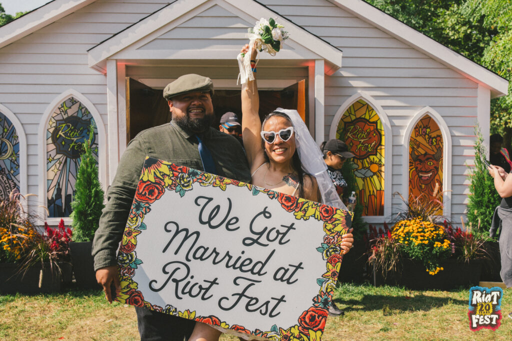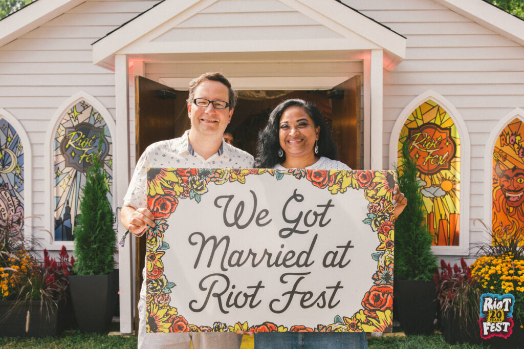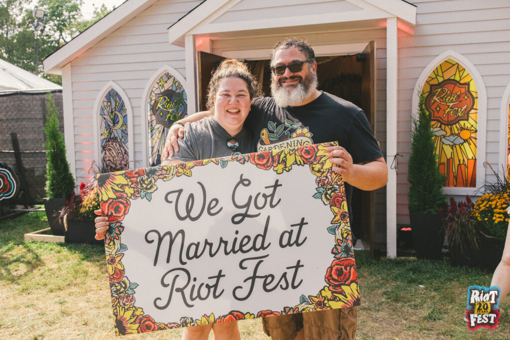 Cue the wedding bells! This year, all these couples said “I do” in our stained-glass-paneled Riot Fest Wedding Chapel.