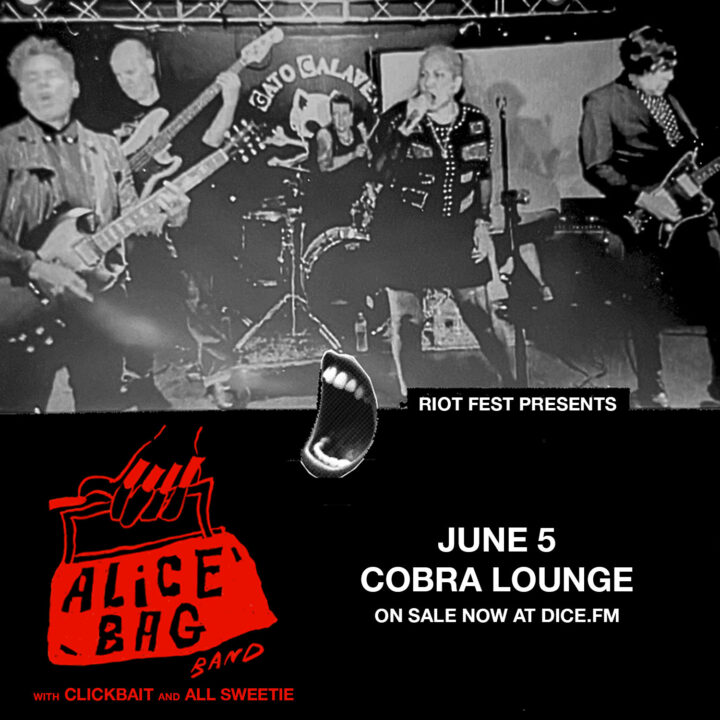 Fri Jun 5 2026 6:00PM Doors: 6 PM // 17+ Riot Fest Presents: Alice BagAlice BagClickbaitSweetie Cobra Lounge 235 N. Ashland Ave • Chicago, IL Tickets RSVP Share https://riotfest.org/event/alice-bag/