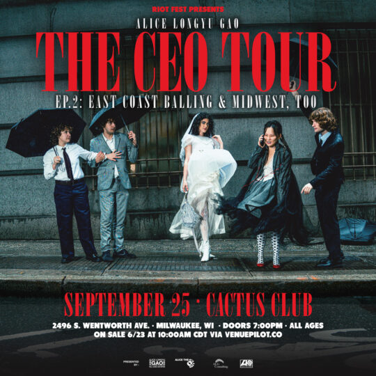 Mon Sep 25 2023 7:00PM Doors: 7 PM // All Ages Riot Fest Presents: Alice Longyu GaoAlice Longyu GaoE-DeathVareons Cactus Club 2496 S. Wentworth Ave • Milwaukee, WI Tickets Share https://riotfest.org/event/alice-longyu-gao-2/Listen to Alice Longyu Gao Other shows you should see…