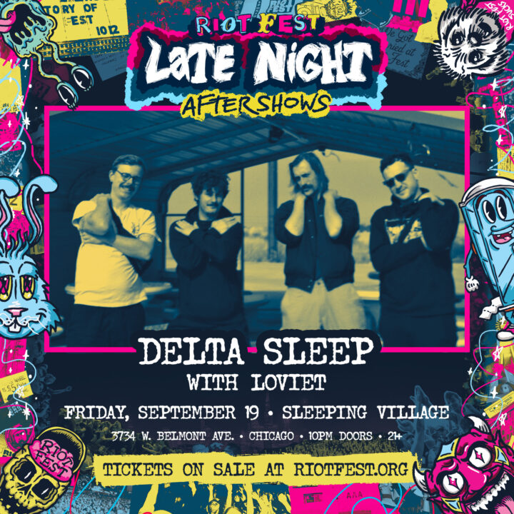 Fri Sep 19 2025 12:00AM Doors: 10 PM // 21+ Riot Fest Presents: Delta SleepDelta SleepLoviet Sleeping Village 3734 W. Belmont Ave • Chicago, IL Tickets RSVP Share https://riotfest.org/event/delta-sleep-4/