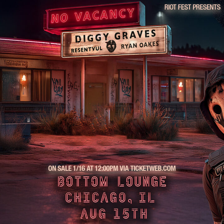 Sat Aug 15 2026 7:00PM Doors: 7 PM // All Ages Riot Fest Presents: Diggy GravesDiggy GravesResentvulRyan Oakes Bottom Lounge 1375 W. Lake St • Chicago, IL Tickets RSVP Share https://riotfest.org/event/diggy-graves-3/