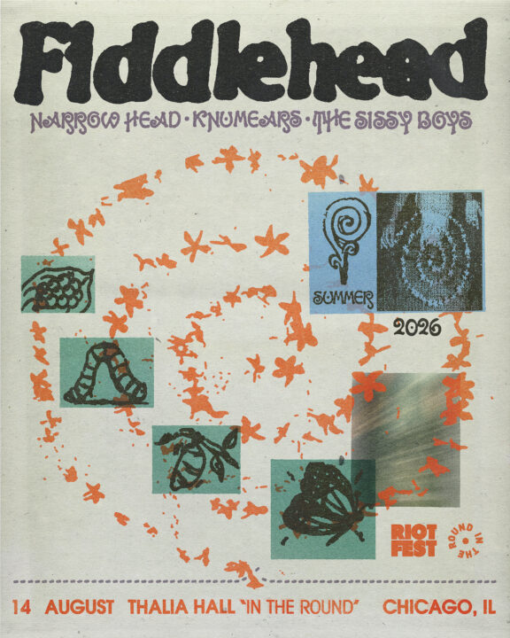 Fri Aug 14 2026 6:00PM Doors: 6 PM // 17+ Riot Fest Presents: FiddleheadFiddleheadNarrow HeadKnumearsThe Sissy Boys Thalia Hall 1807 S. Allport St • Chicago, IL Tickets RSVP Share https://riotfest.org/event/fiddlehead-2/