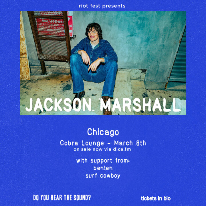 Sun Mar 8 2026 6:00PM Doors: 6 PM // All Ages Riot Fest Presents: Jackson MarshallJackson Marshallbentensurf cowboy Cobra Lounge 235 N. Ashland Ave • Chicago, IL Tickets RSVP Share https://riotfest.org/event/jackson-marshall/