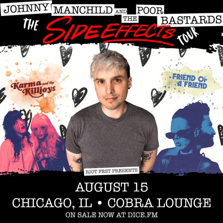 Sat Aug 15 2026 6:00PM Doors: 6 PM // All Ages Riot Fest Presents: Johnny Manchild Record Release ShowJohnny Manchild Record Release ShowFriend of a FriendKarma and The Killjoys Cobra Lounge 235 N. Ashland Ave • Chicago, IL Tickets RSVP Share https://riotfest.org/event/johnny-manchild-record-release-show/