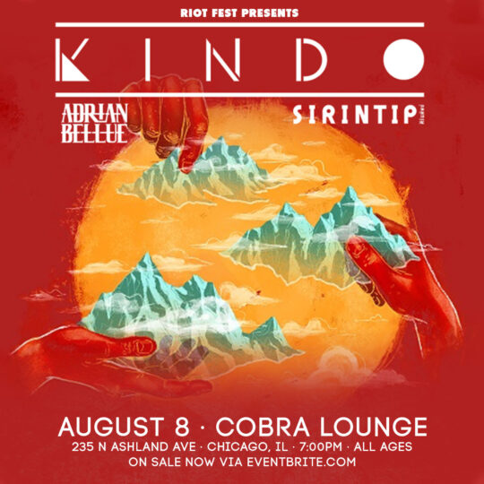 Thu Aug 8 2019 7:00PM Doors at 7:00 p.m.All Ages Riot Fest Presents: KindoKindo Cobra Lounge 235 N. Ashland Ave. • Chicago, IL Tickets RSVP Share https://riotfest.org/event/kindo/