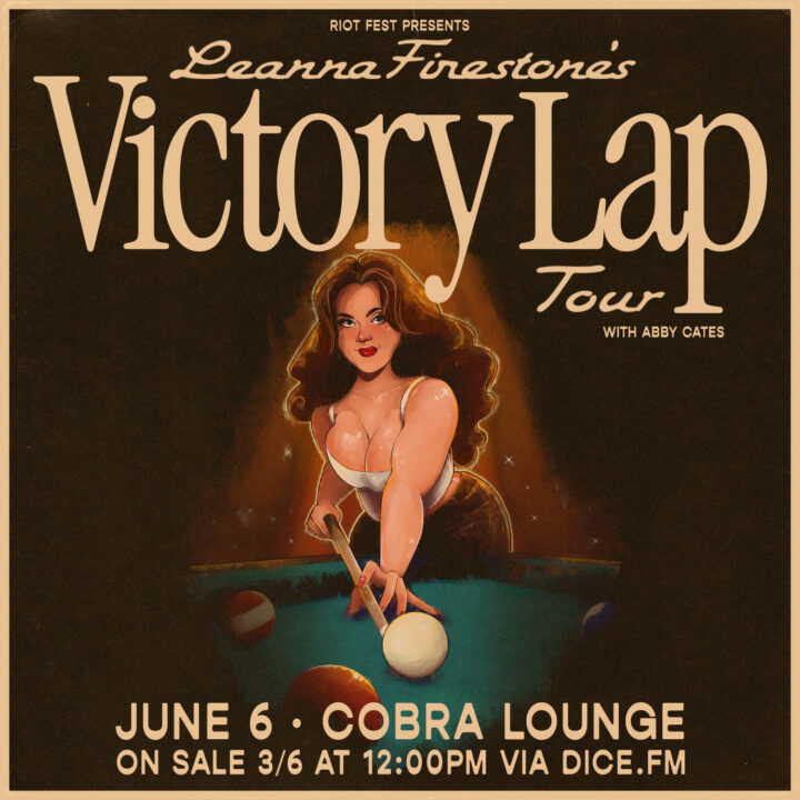 Sat Jun 6 2026 6:00PM Doors: 6 PM // All Ages Riot Fest Presents: Leanna FirestoneLeanna FirestoneAbby Cates Cobra Lounge 235 N. Ashland Ave • Chicago, IL Tickets RSVP Share https://riotfest.org/event/leanna-firestone/