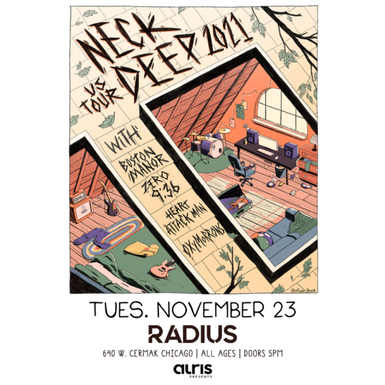 Tue Nov 23 2021 5:00PM Doors at 5:00 p.m. / All Ages Riot Fest Presents: Neck DeepNeck Deep Radius 640 W Cermak Rd • Chicago, IL Tickets RSVP Share https://riotfest.org/event/neck-deep/