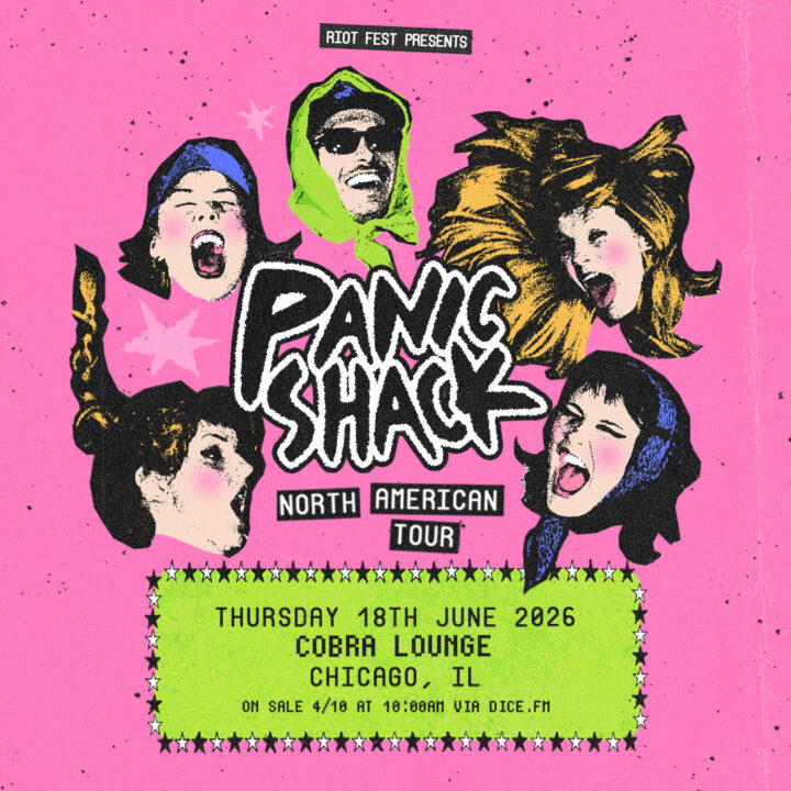 Thu Jun 18 2026 7:00PM Doors: 7 PM // 17+ Riot Fest Presents: Panic ShackPanic Shack Cobra Lounge 235 N. Ashland Ave • Chicago, IL Tickets Share https://riotfest.org/event/panich-shack/