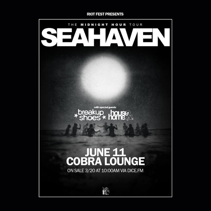 Thu Jun 11 2026 7:00PM Doors: 7 PM // 17+ Riot Fest Presents: SeahavenSeahavenBreakup ShoesHouse & Home Cobra Lounge 235 N. Ashland Ave • Chicago, IL Tickets RSVP Share https://riotfest.org/event/seahaven/