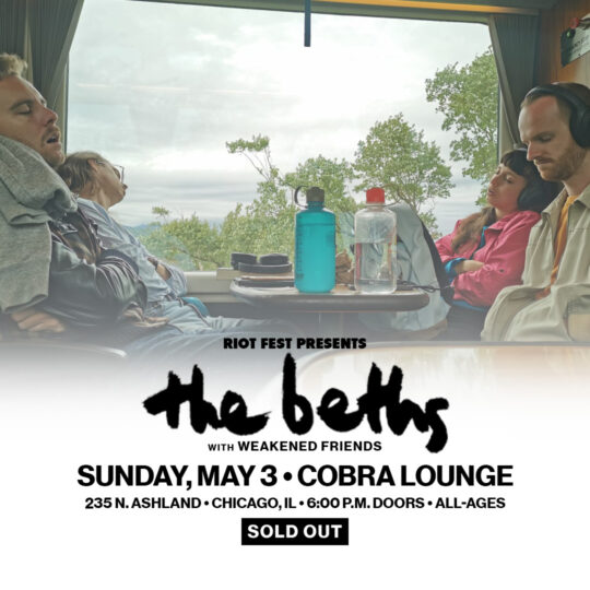 Sun May 3 2020 6:00PM Doors at 6:00 p.m.All Ages Riot Fest Presents: (SOLD OUT) The Beths(SOLD OUT) The Beths Cobra Lounge 235 N. Ashland Ave. • Chicago, IL Sold Out RSVP Share https://riotfest.org/event/the-beths/