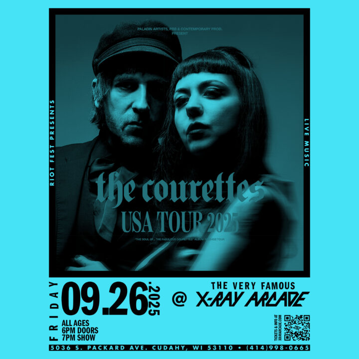 Fri Sep 26 2025 6:00PM Doors: 6 PM // All Ages Riot Fest Presents: The CourettesThe CourettesJinksie X-Ray Arcade 5036 S. Packard Ave • Cudahy, WI Tickets RSVP Share https://riotfest.org/event/the-courettes-2/