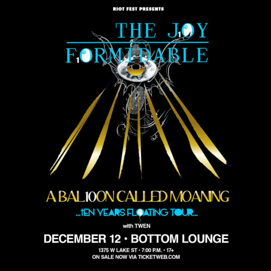 Thu Dec 12 2019 7:00PM Doors at 7:00pm / 17+ Riot Fest Presents: The Joy FormidableThe Joy Formidable Bottom Lounge 1375 W. Lake St. • Chicago, IL Tickets Share https://riotfest.org/event/the-joy-formidable/