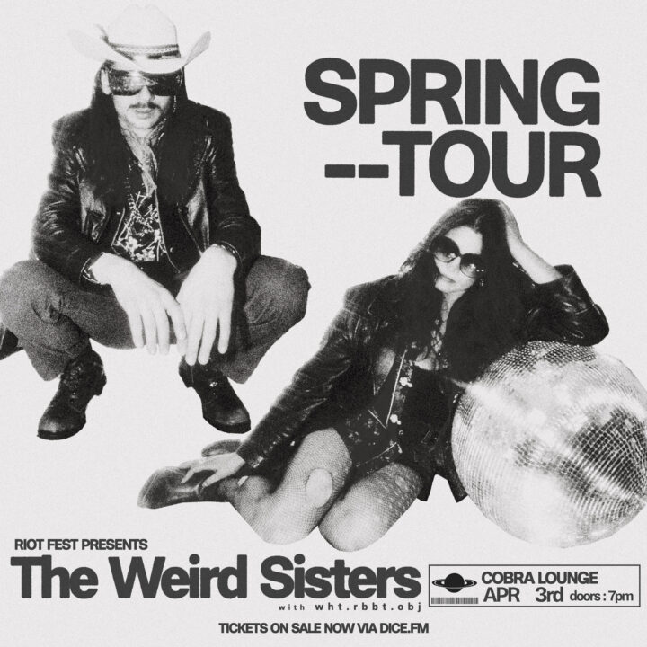 Thu Apr 3 2025 7:00PM Doors: 7 PM // 17+ Riot Fest Presents: The Weird SistersThe Weird Sisterswht.rbbt.obj Cobra Lounge 235 N. Ashland Ave • Chicago, IL Tickets RSVP Share https://riotfest.org/event/the-weird-sisters/
