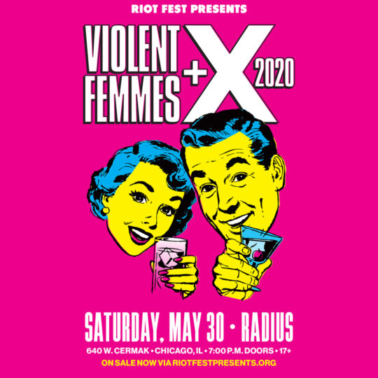 Sat May 30 2020 7:00PM Doors at 7:00 p.m.17+ Riot Fest Presents: POSTPONED: Violent Femmes / XPOSTPONED: Violent Femmes / X Radius 640 W. Cermak Rd. • Chicago, IL Tickets RSVP Share https://riotfest.org/event/violent-femmes-and-x/