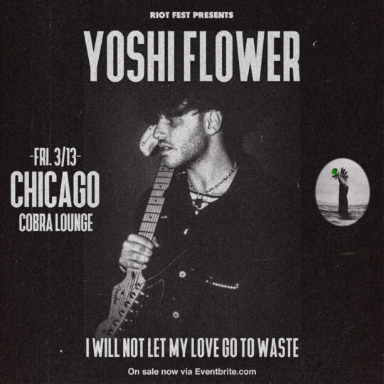 Fri Mar 13 2020 6:00PM Doors at 6:00 p.m.All Ages Riot Fest Presents: Yoshi FlowerYoshi Flower Cobra Lounge 235 N. Ashland Ave. • Chicago, IL Tickets RSVP Share https://riotfest.org/event/yoshi-flower/