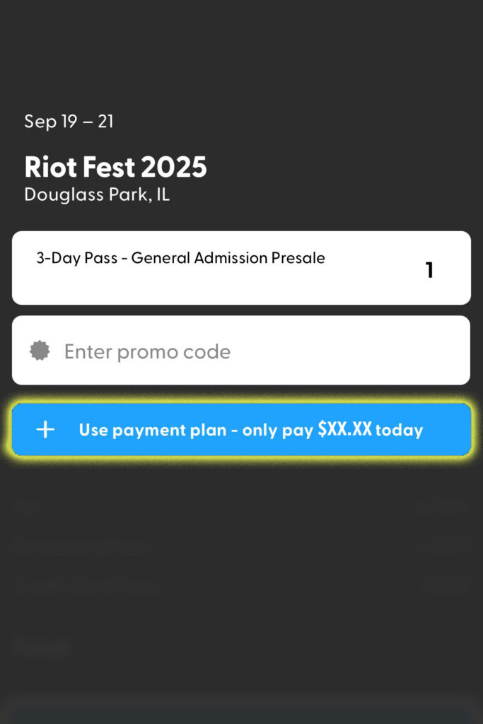 So you want Riot Fest tickets AND you want to make a few smaller payments with no interest, instead of up front all at once. Done.